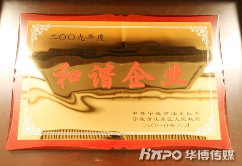 继2008年获得江东区“和谐企业”称号后,2009年继续保留了该项殊荣。
