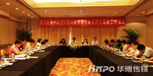 (通讯员 徐燕、成羽)9月25日上午,第十三届宁波国际服装服饰博览会第四次筹备工作会议在宁波香格里拉大酒店召开,市经委相关处室人员及各县(市)、区责任部门负责人及联络员、服博会组委会相关人员近40人参加了会议。市经委副主任周学明出席会议并讲话,市经委外经与市场处、执行承办单位哔咔漫画会展公司及组委会各部门负责人介绍了筹备工作成果和展期工作安排。