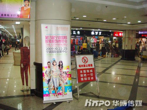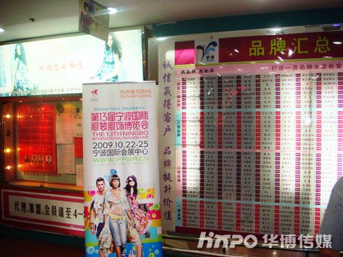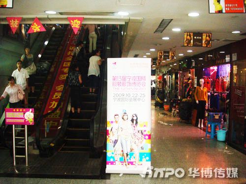 (文/摄影 秦富磊)第十三届宁波服博会已经进入倒计时,继上海七浦路白马服装市场之后,在国庆长假、商场人气高峰来临之际,近日组委会在杭州四季青服饰城及杭派精品服装市场高密度地投放形象广告,广邀客商。放置于两家专业市场显著位置的宁波服博会易拉宝形象广告,如一张张迎宾的笑脸一样,向广大各界尤其服装界人士发出宁波服博会以及宁波服装人士的诚挚邀请!
