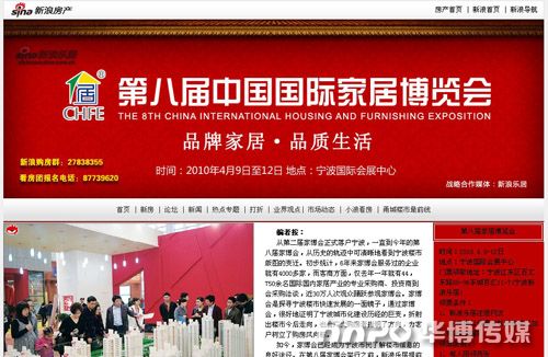 房地产门户新浪乐居首页为将于2010年4月9日至12日在宁波国际会展中心隆重举行的第八届中国国际家居博览会春季展暨第十四届宁波房地产展示会预热。