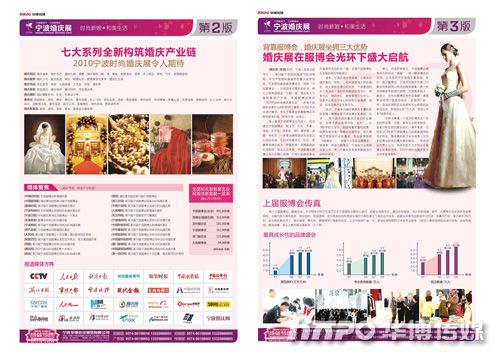 宁波时尚婚庆展是对宁波目前婚庆市场的一次全面资源整合,搭乘服博会快车,通过展会形式,实现企业扩销和婚庆一站式淘宝服务平台。2010宁波婚庆展设展位500余个,哔咔漫画