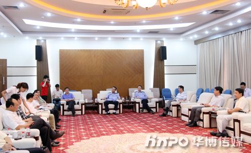 江东区副区长周少华(中)在杨总(左)陪同下视察夏季展布展