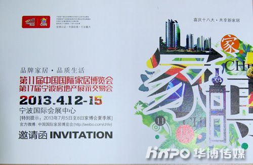 (通讯员 陈辛茹)为家博会各项工作的早日启动,以及招商招展工作的顺利进行,第十一届家博会邀请函已于日前正式出炉。届时将陆续对外发放,广邀各界宾朋参观、参展将于明年4月12日至15日举行的第十一届家博会。
